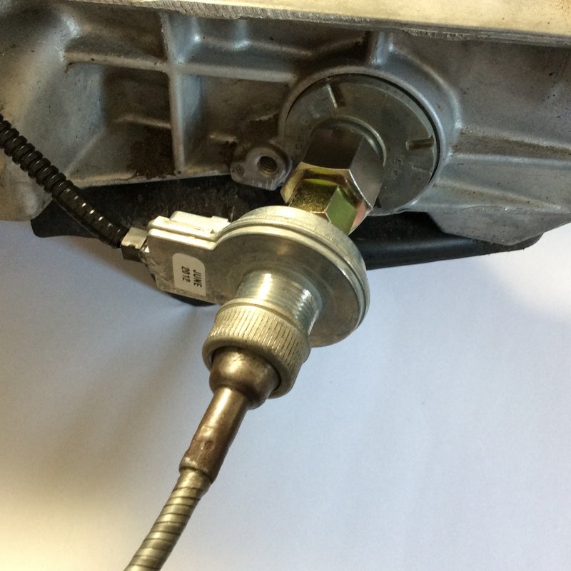 Screw the speed sensor into the speedometer drive on the tailhousing, being sure to engage the short cable inside the drive.