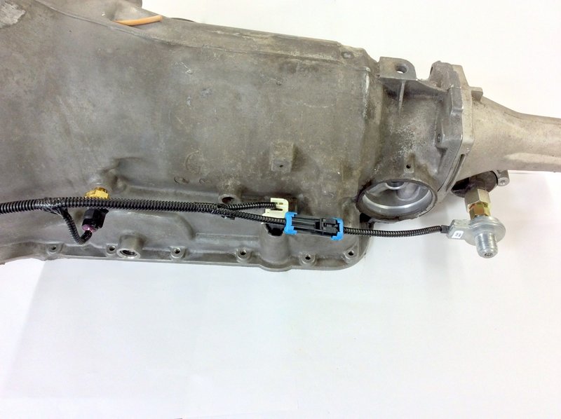 Earlier, you pushed the wiring harness through the firewall and installed the grommet. From the underside of the vehicle, locate the wire harness and begin routing it toward the right rear side of the transmission. Locate the transmission wiring socket, shown below: