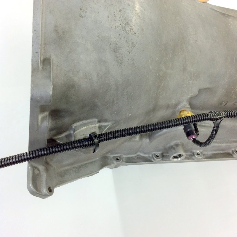 Finally, use one of the provided cable ties to fasten the harness to the bellhousing as shown:
