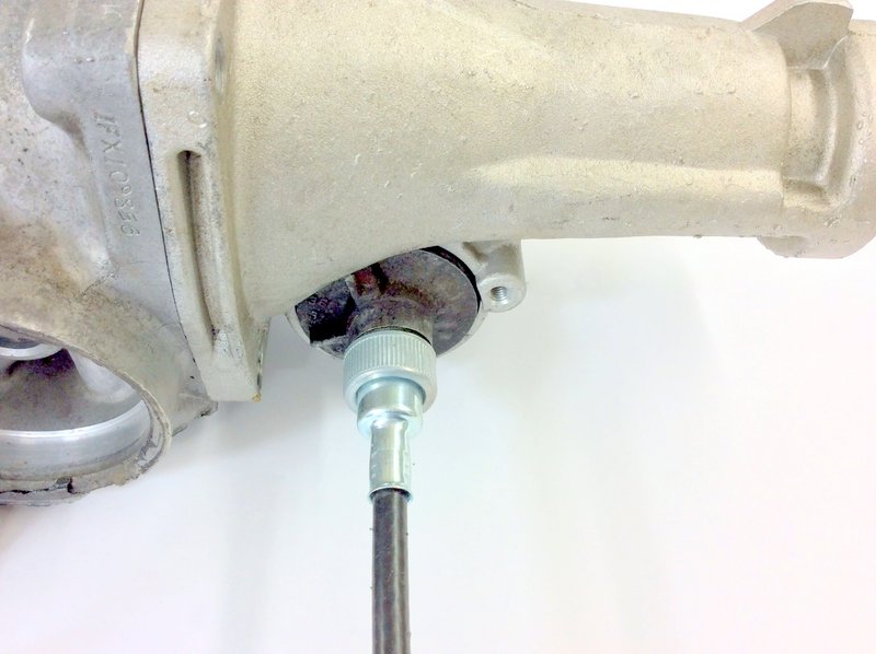 Screw the speed sensor into the speedometer drive on the tailhousing, being sure to engage the short cable inside the drive.