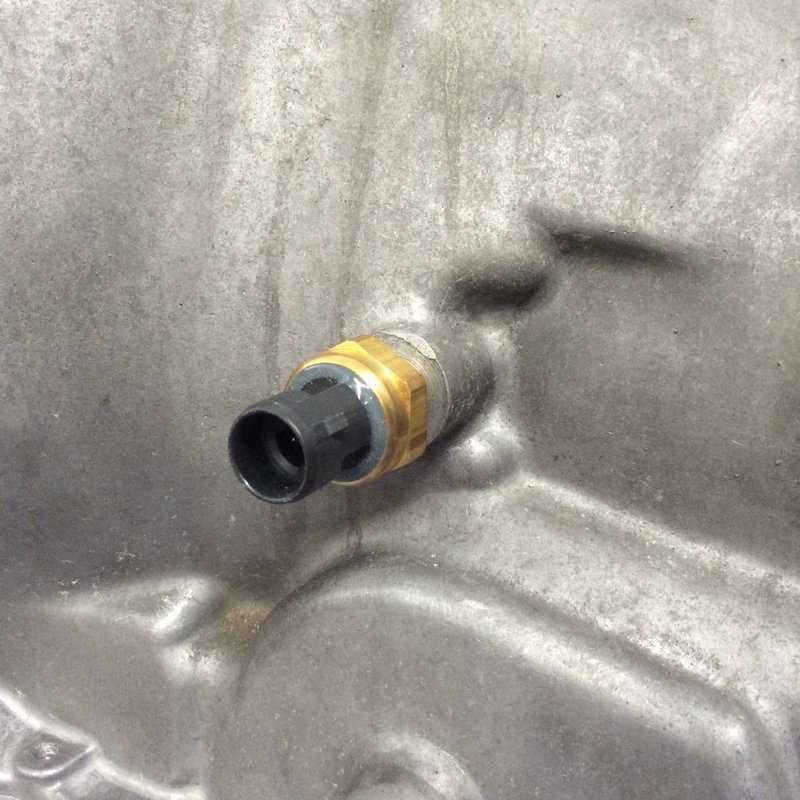 Do not overtighten! The transmission case is made of aluminum and the pressure sensor is made of brass. Both are soft metals and will strip easily.