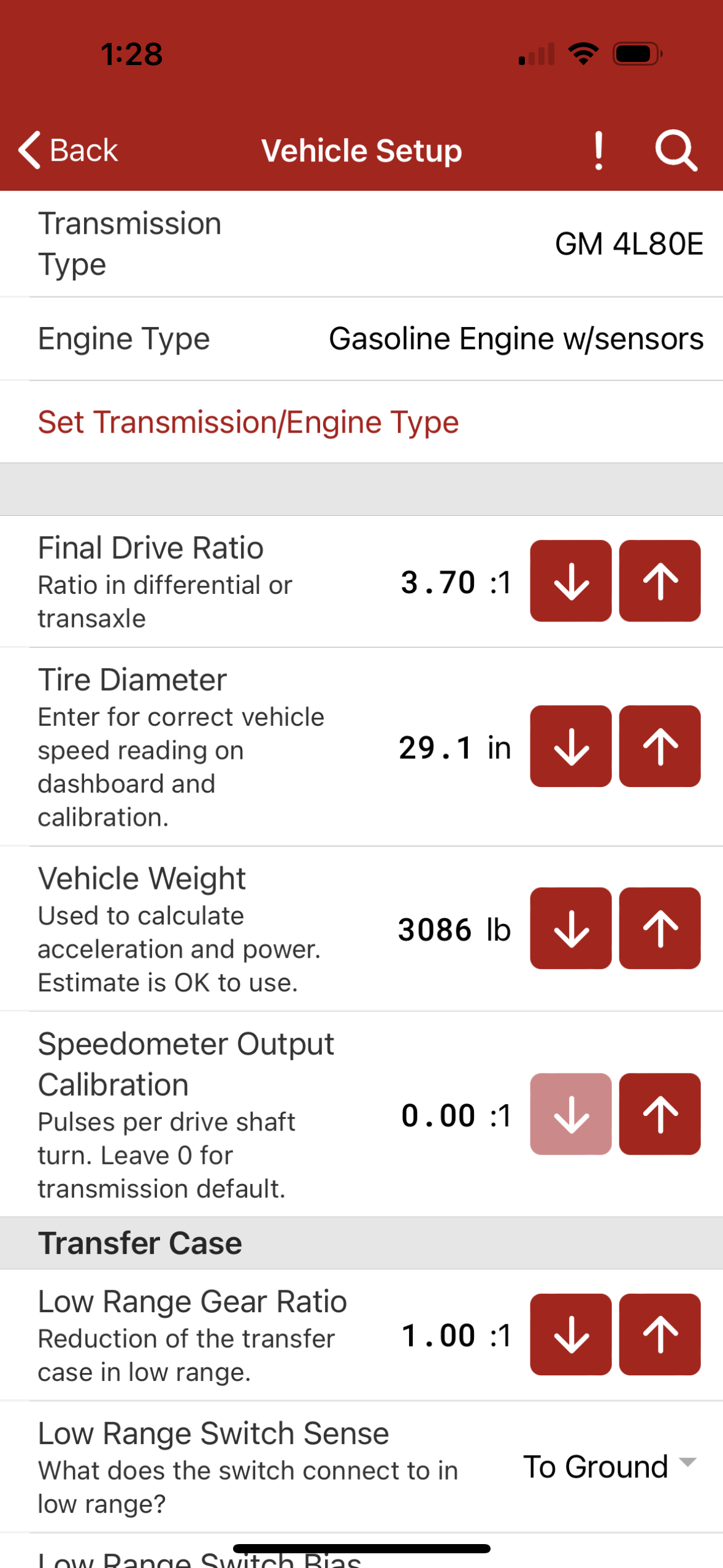 Overdrive cancel switches can be configured for toggle or pushbutton operation, depending on your switch. Make changes in the Vehicle Setup / Transmission Options menu.
