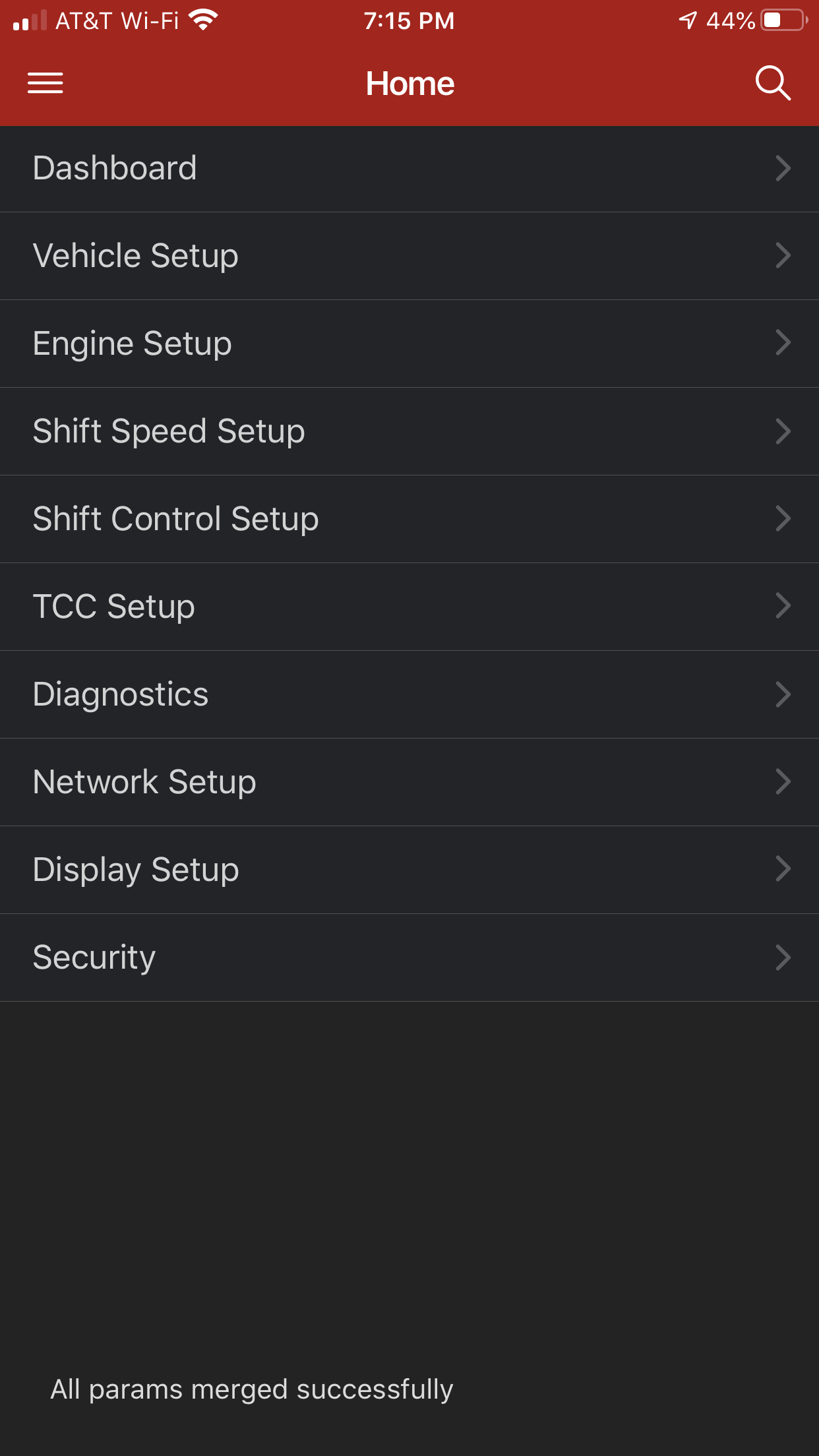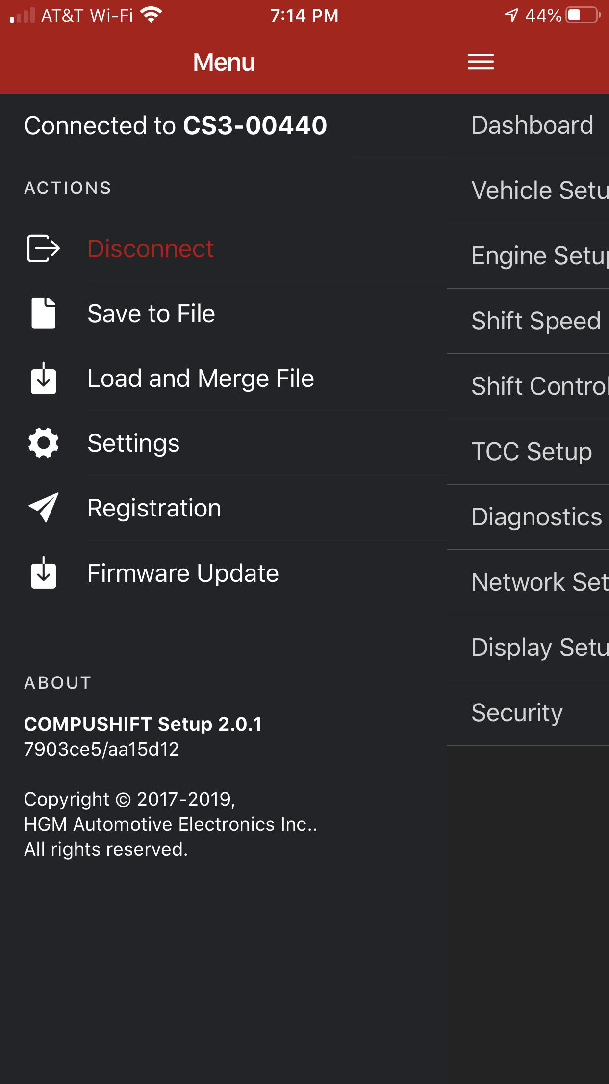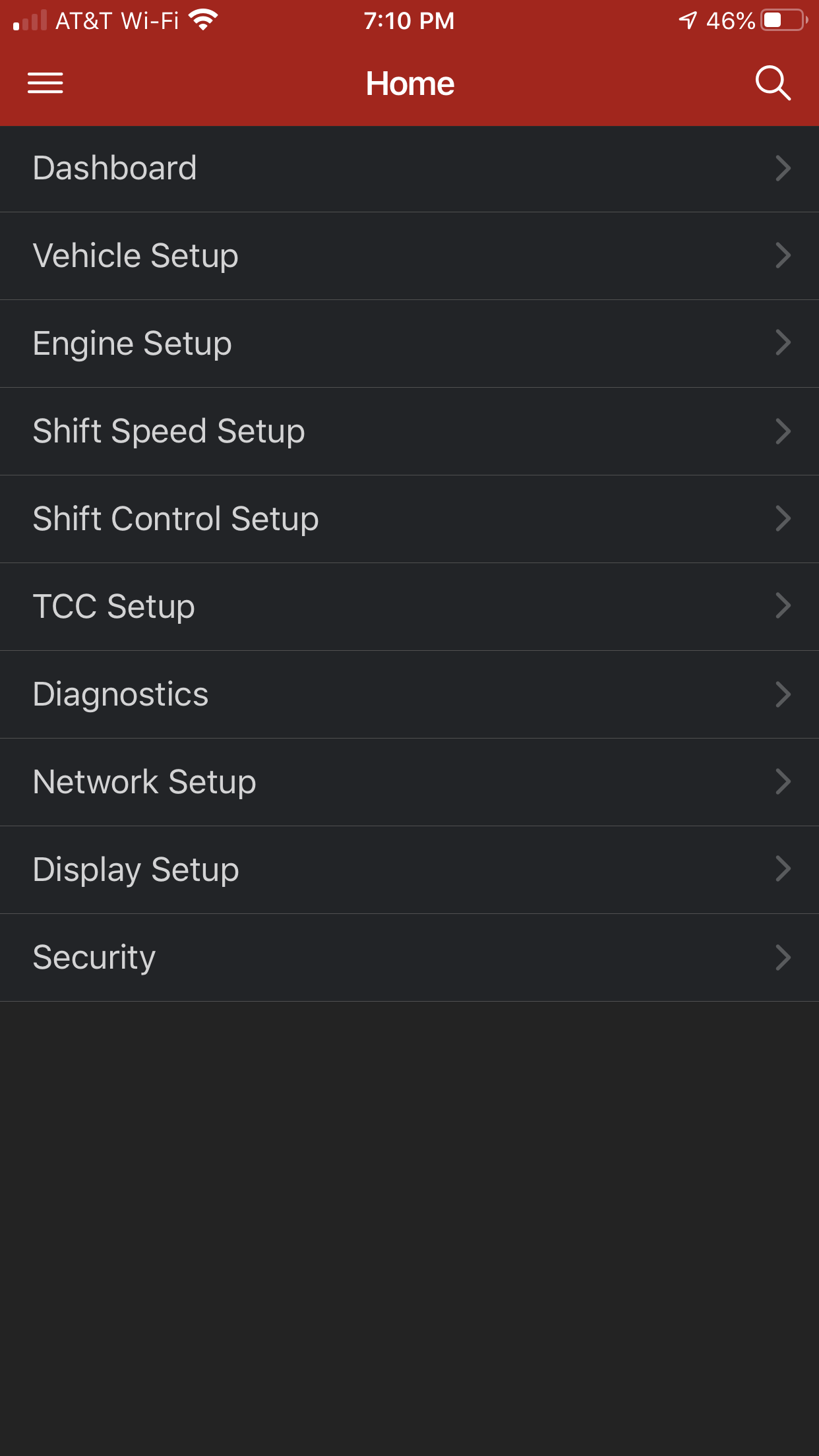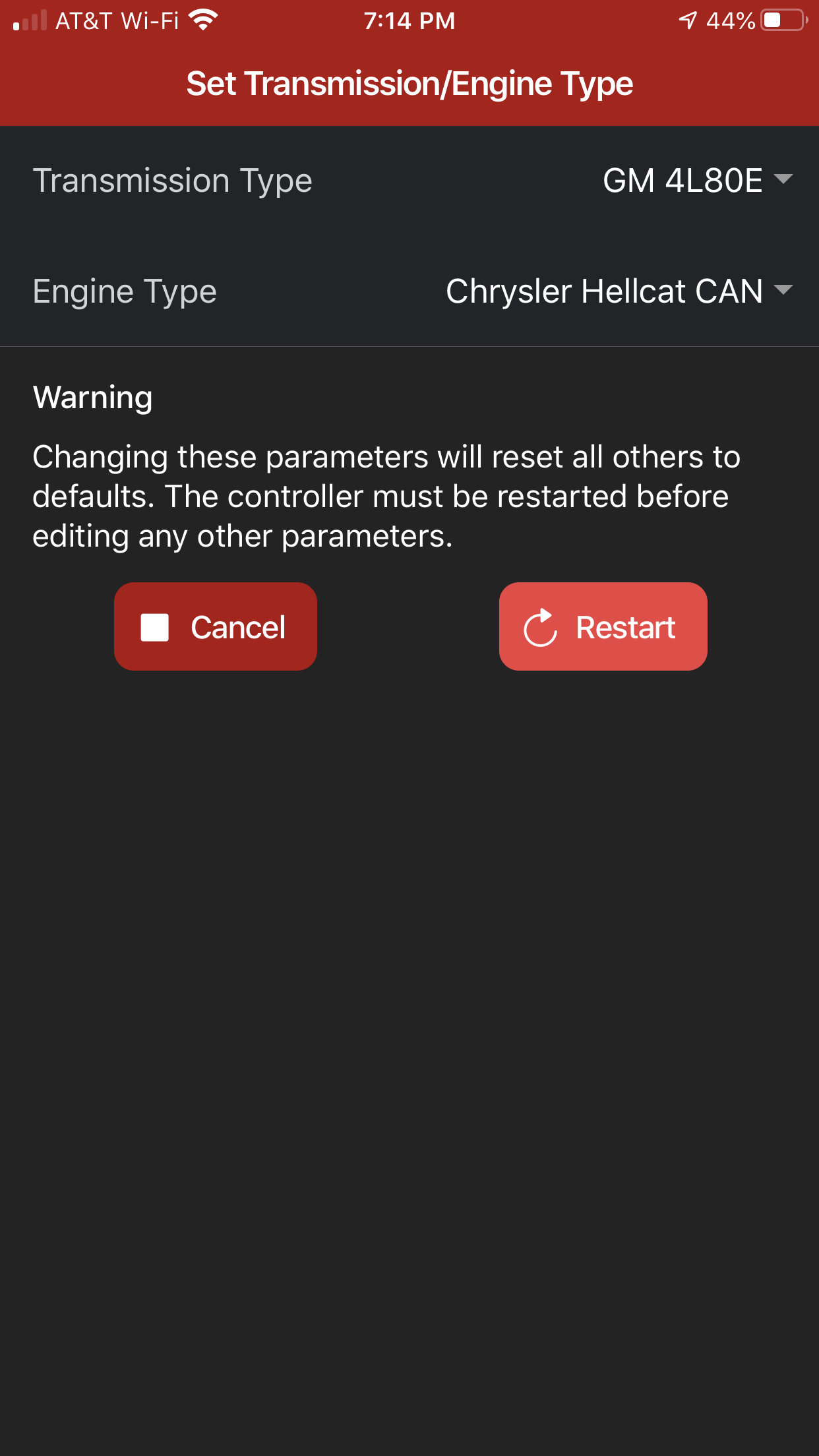 when done, press the “Restart” button. The COMPUSHIFT controller will restart, and in a moment, the app will reconnect, bringing you back to the “Vehicle Setup” menu.