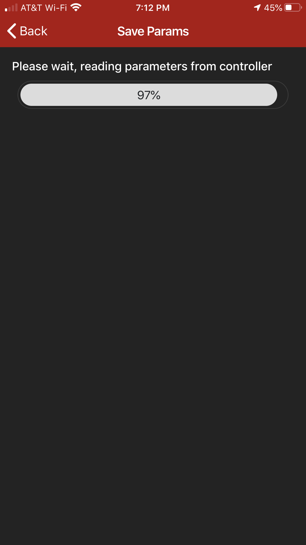 Select “Save to File”. You will have to wait while all of the parameters are read from the controller. The progress bar will show 100% when the done.