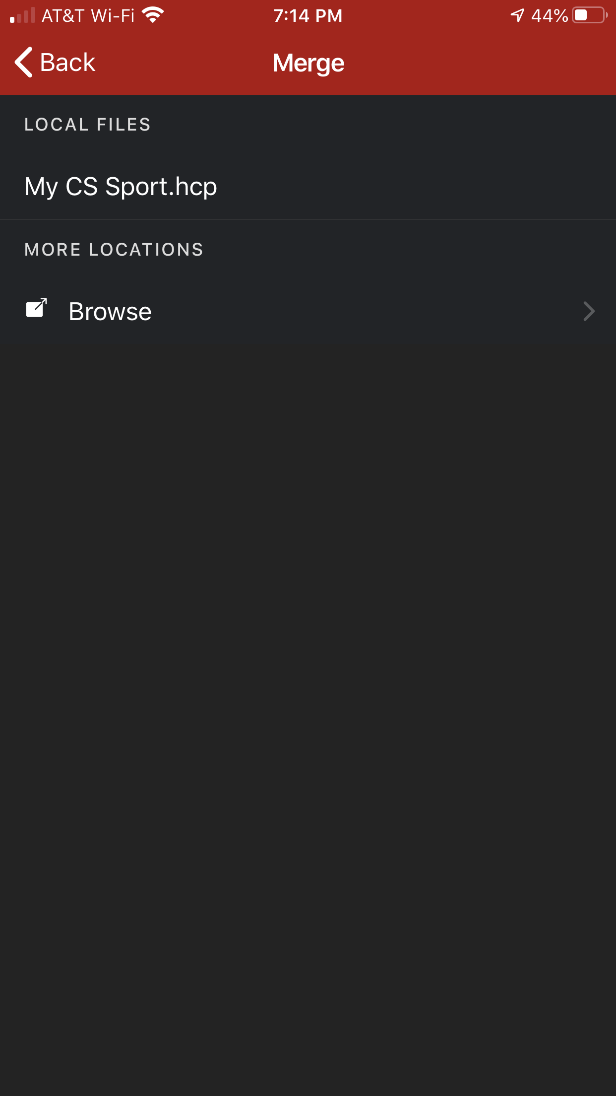 Click the “Load and Merge File” option in the menu, and you’ll be presented with a list of files. Choose the one you saved to earlier. In our example, we used “My CS Sport”