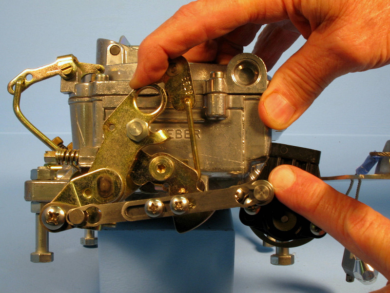 - Set the Ratio Arm so that the center of its pin is aligned with the edge of the carburetor linkage, as shown.