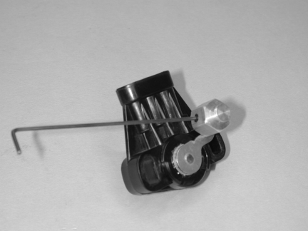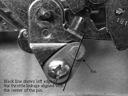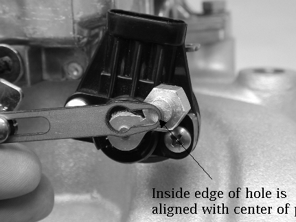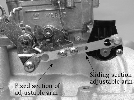 Adjust the arm length so that edge of the hole of the sliding section is aligned with the center of the throttle position sensor pin. The correct length is shown in the picture above. Tighten the adjustable arm screws at this position.