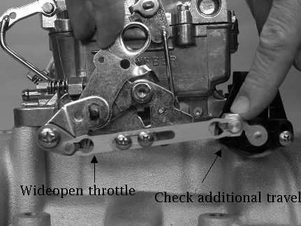 Check the adjustable arm with the throttle fully closed. There should be tension on the arm and no free play. Correct any free play by shortening the arm slightly.