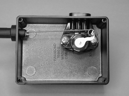 Open the sensor box by removing the four case screws and lid. Lift the cable loop from the sensor and push it forward into the cable housing.